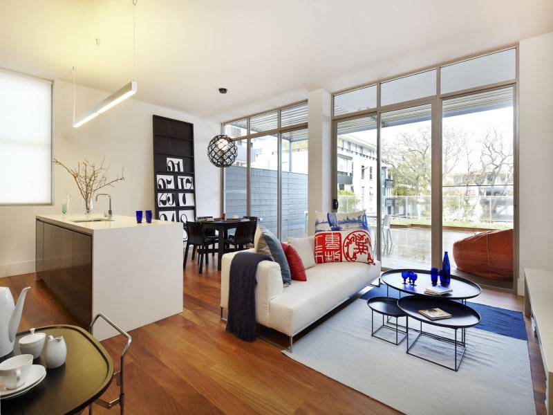 Heritage outside, eclectic chic within. This large 2 bedroom apartment is the last available of only 10 homes in 'Alexandra', and rare indeed. The distinctive feature about this apartment is its generous 77sqm garden terrace, with lawn, decking and gardens. The ultra-modern kitchen and bathrooms, timber floors, storage are additional standout features.