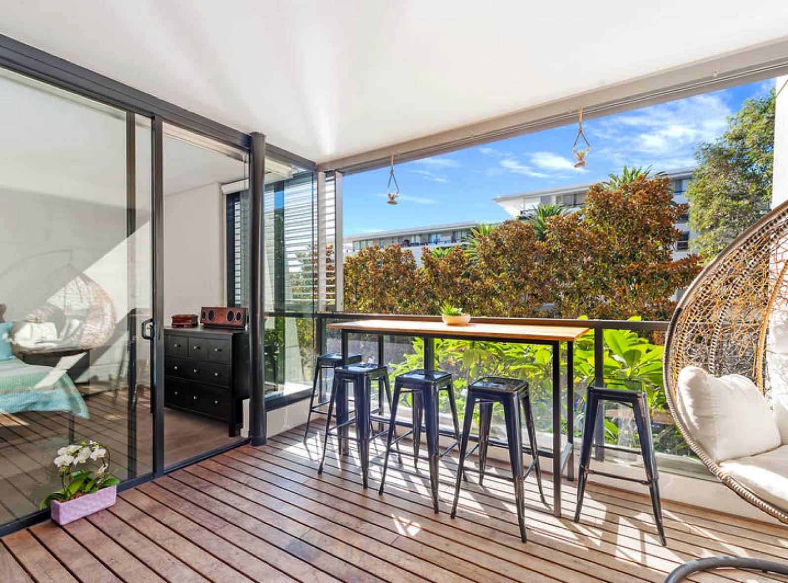 This beautifully presented one bedroom apartment is East facing and has a study nook. Located on the second floor of the Trio building looking out through lush green plants onto the award winning 50m pool.