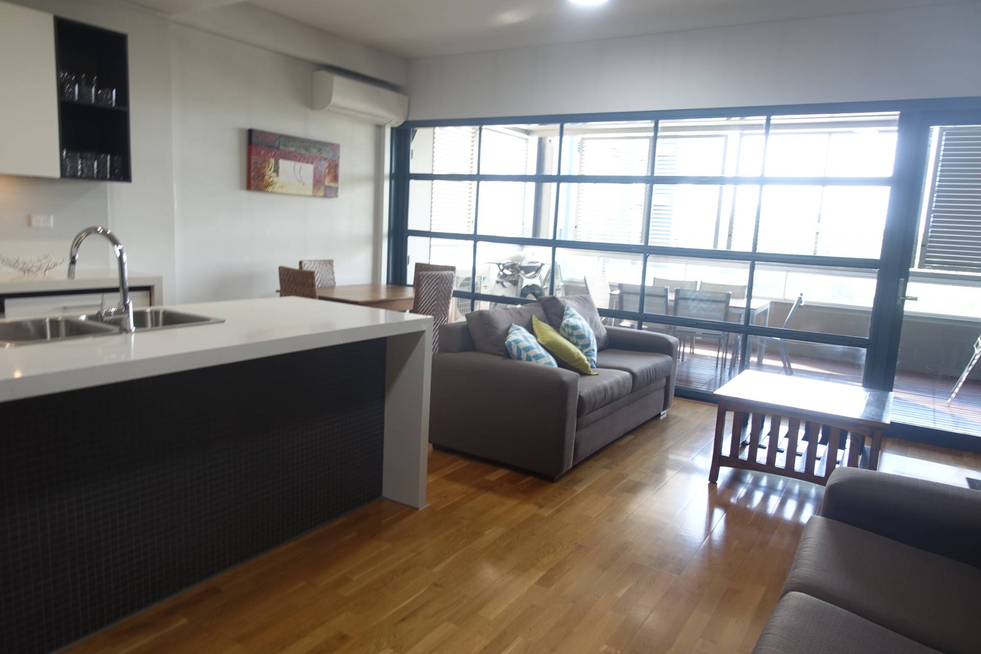 - Spacious living area with polished timber floors and split air-conditoner