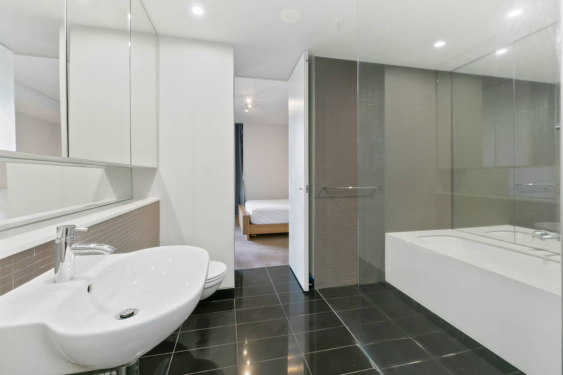 * Modern bathroom.