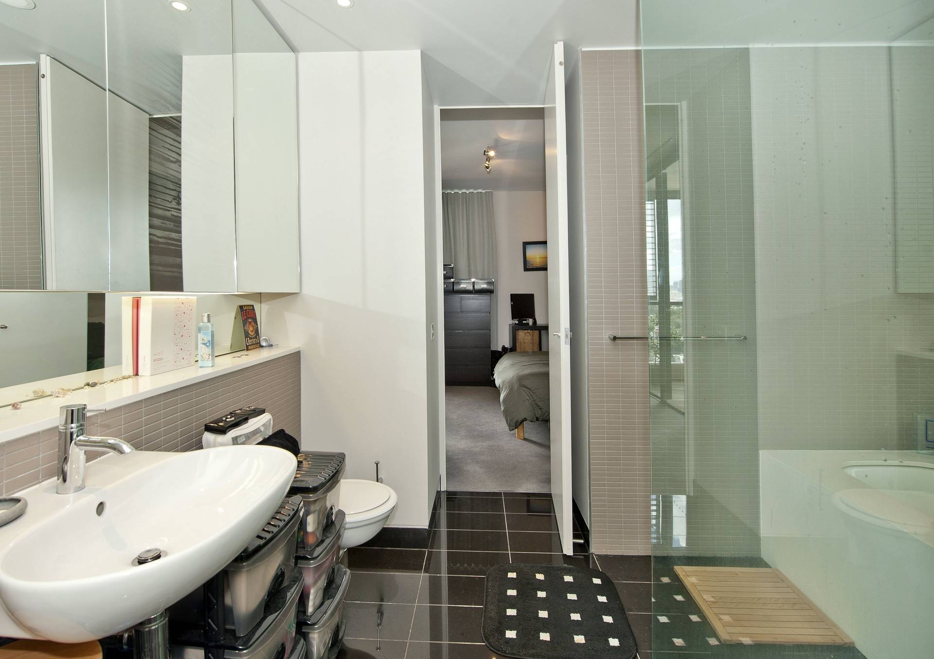 - Sleek dual access bathroom with separate bath and shower