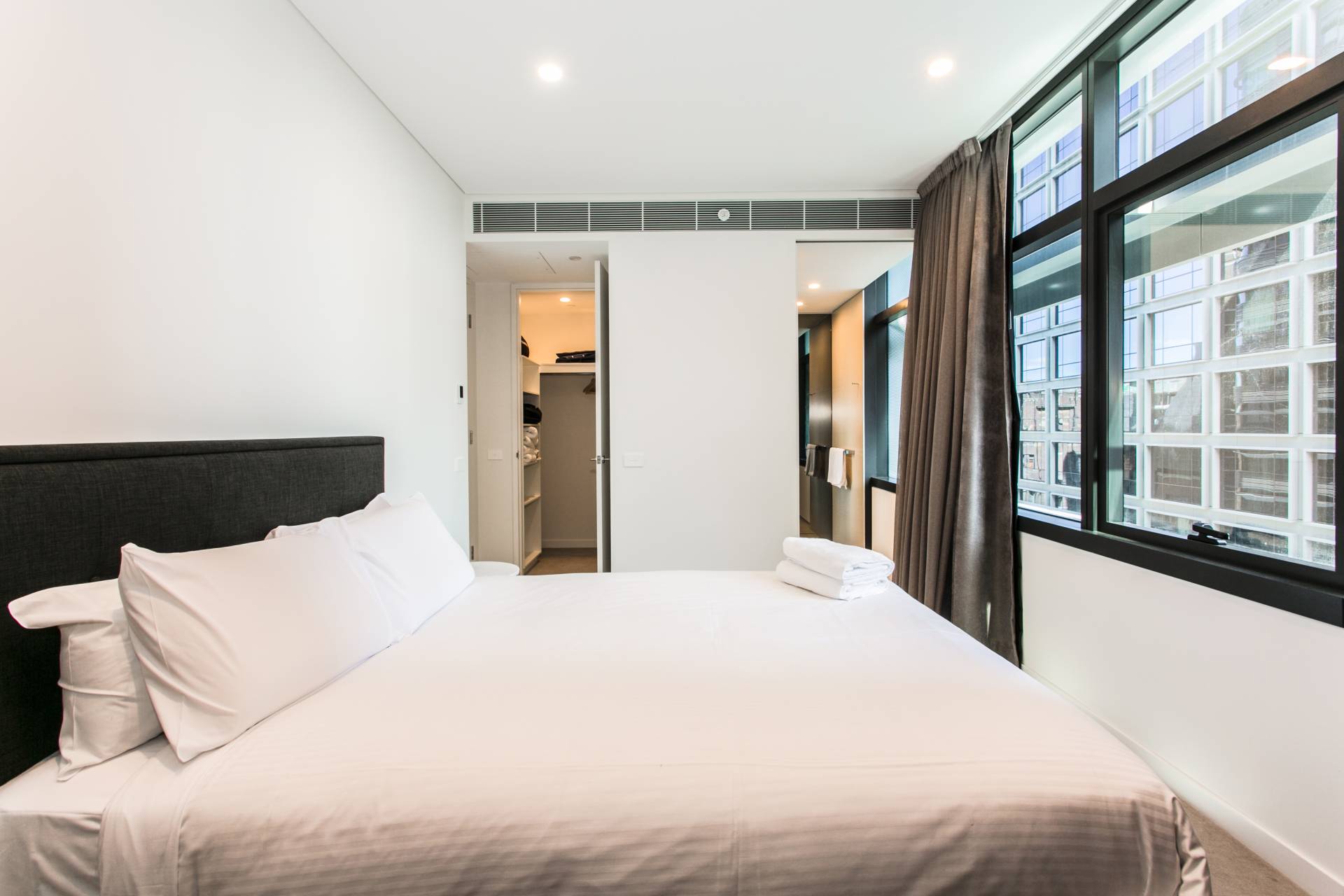 This beautifully presented apartment has been furnished with designer furniture that is modern and sheek, the beds are very comfortable and luxurious with mattresses from sealy posturpedic. No expense has been spared. Spacious two bedroom, two bathroom plus parking with a huge loggia area.
