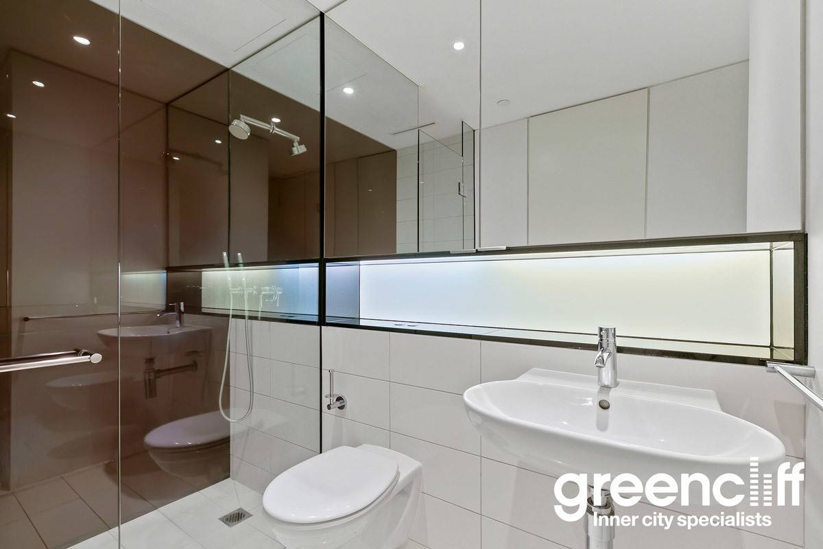 With floor to ceiling windows the property is light, spacious and enjoys a city view. Kitchen and bathroom detailing is exceptional, with backlit glass splashbacks.