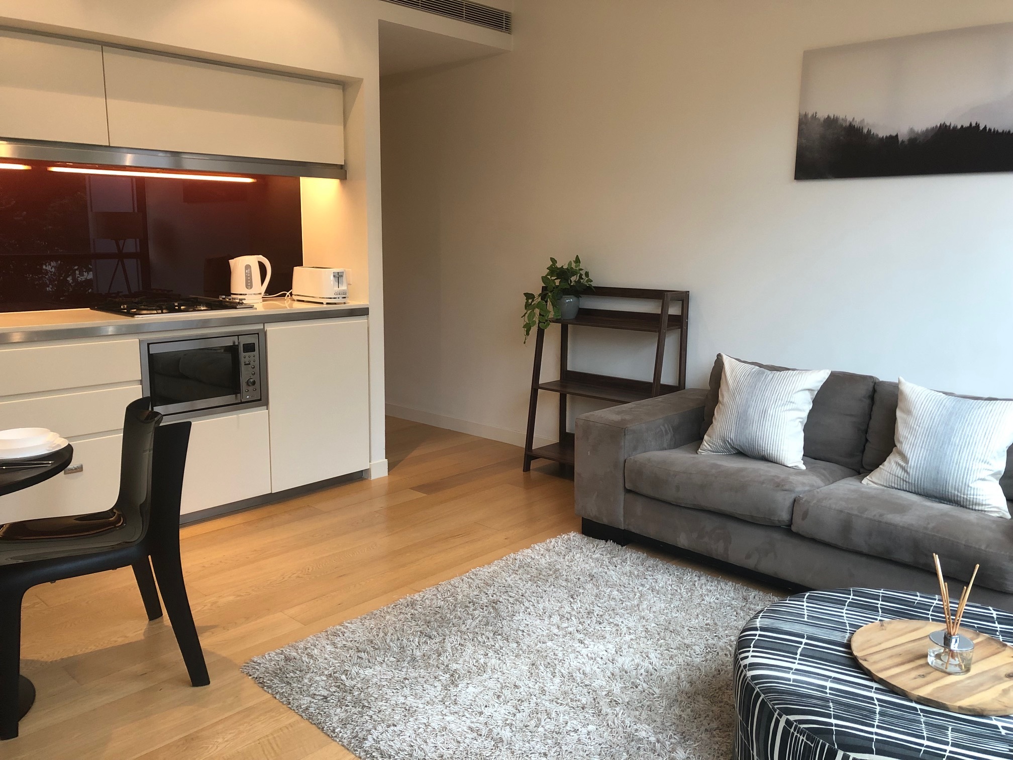 - Modern kitchen facilities with dishwasher, refrigerator and microwave