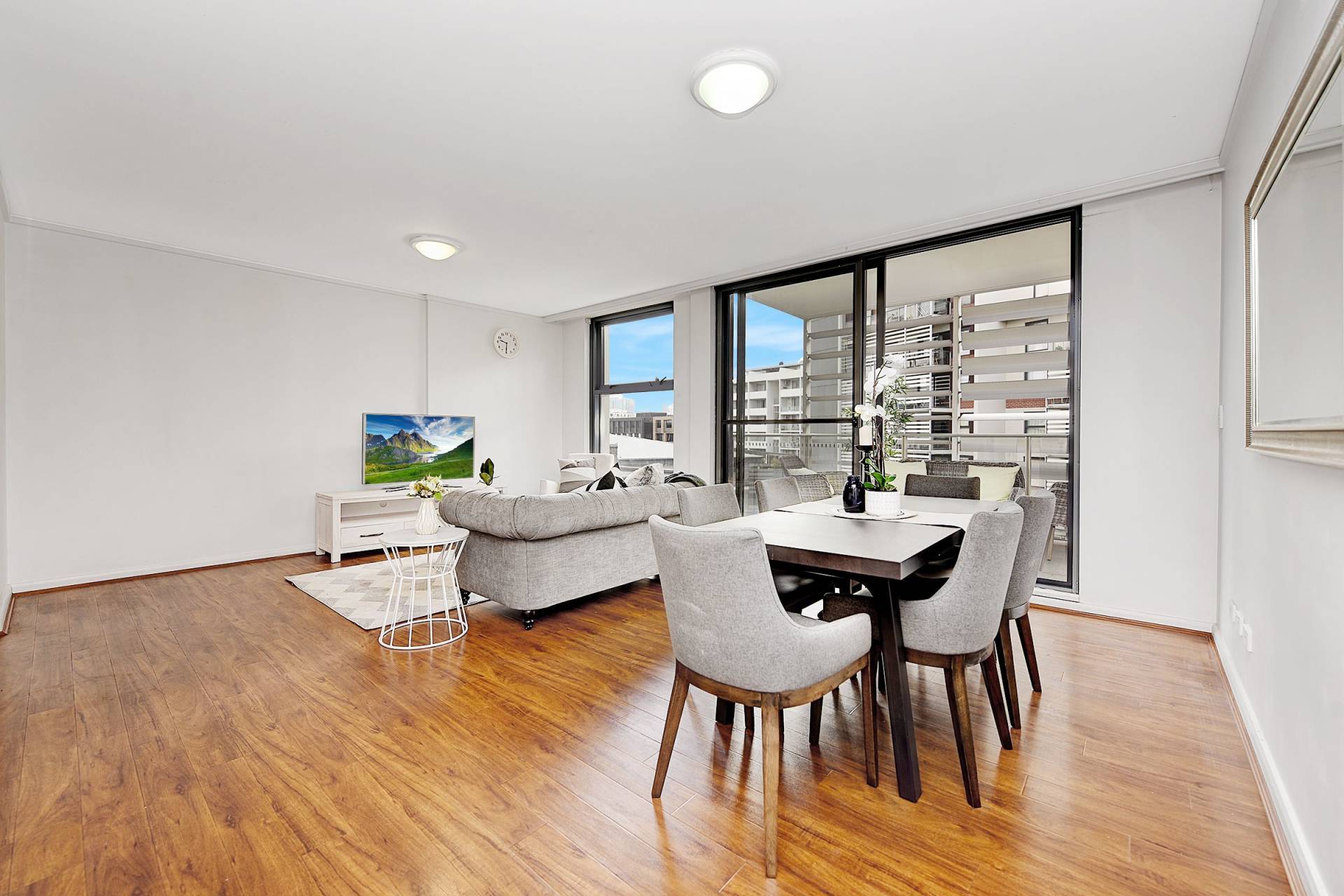 *Timber flooring throughout the living room, bedroom and study area