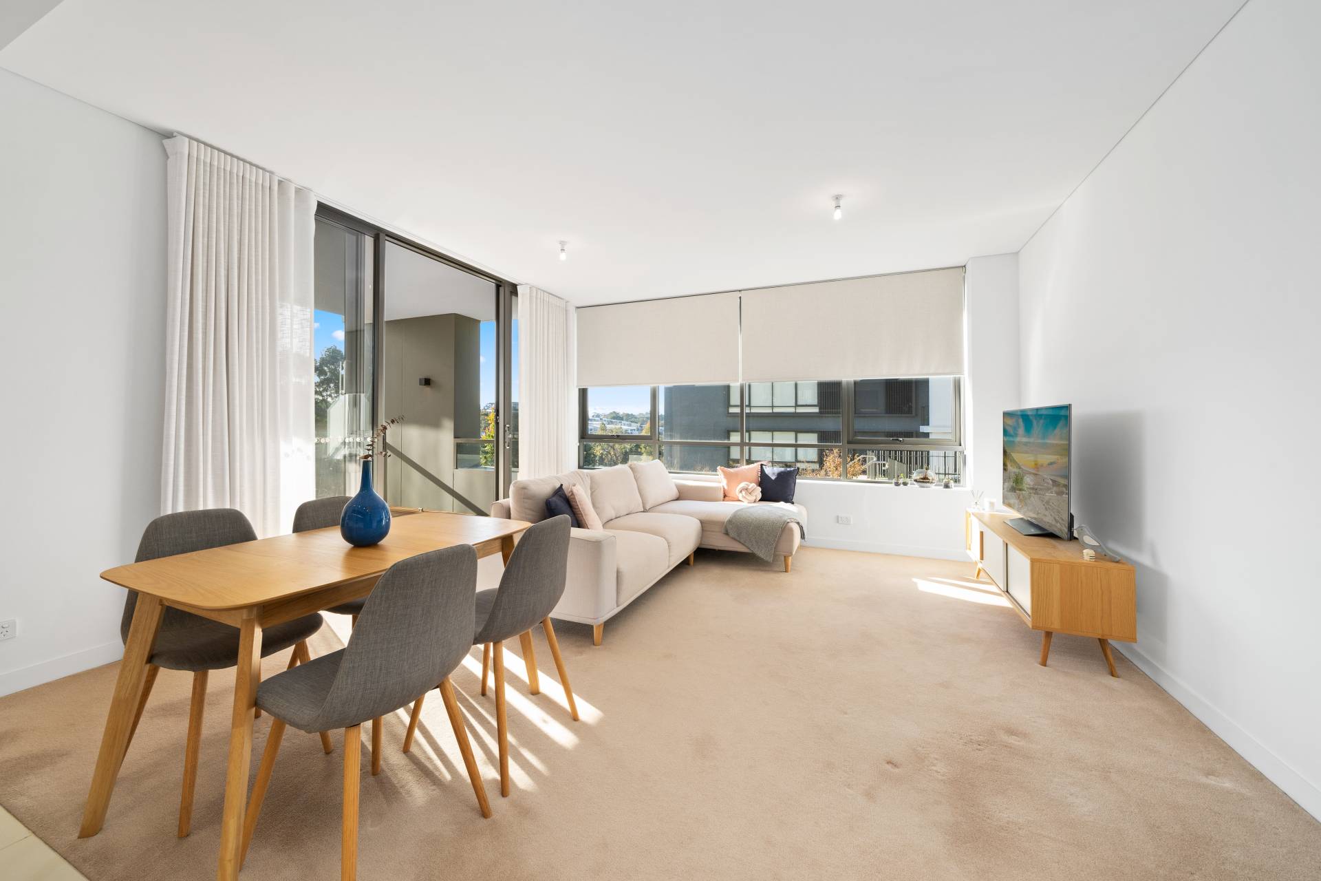 - North East facing apartment with uninterrupted district views - Combined lounge and dining area leading out to a sunny North East facing balcony - SMEG kitchen appliances, gas cook top + integrated microwave and dishwasher with 900mm fridge space - Double sized bedroom with built in wardrobe