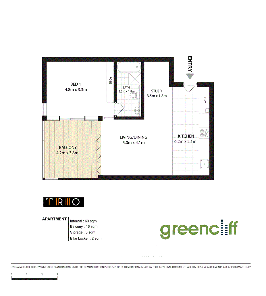 "TRIO" ONE BEDROOM APARTMENT NEWLY PAINTED, CAR SPACE AND STORAGE