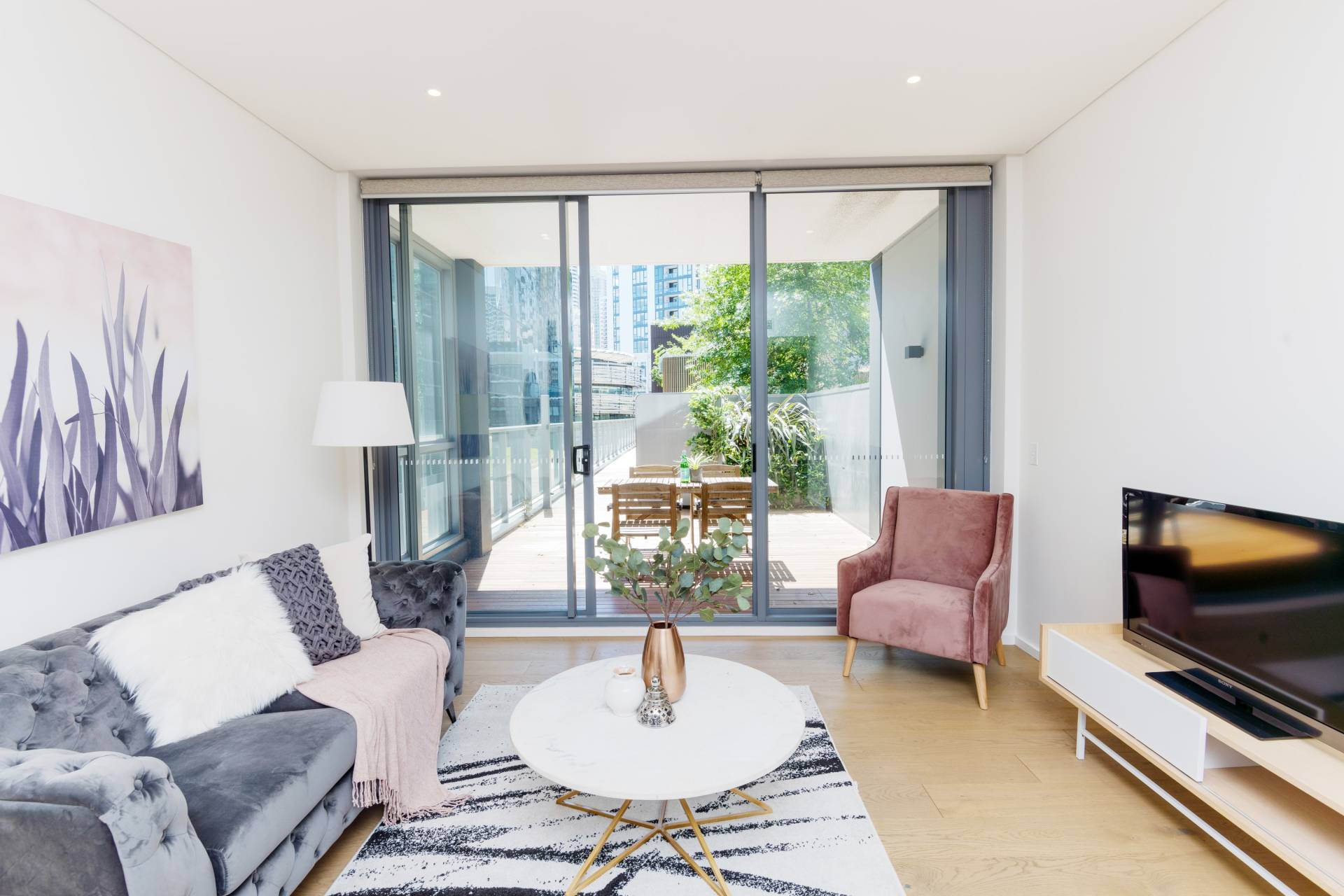 Apartment 1052 is the most unique 2 Bedroom in Darling Square perfect for family and downside living.