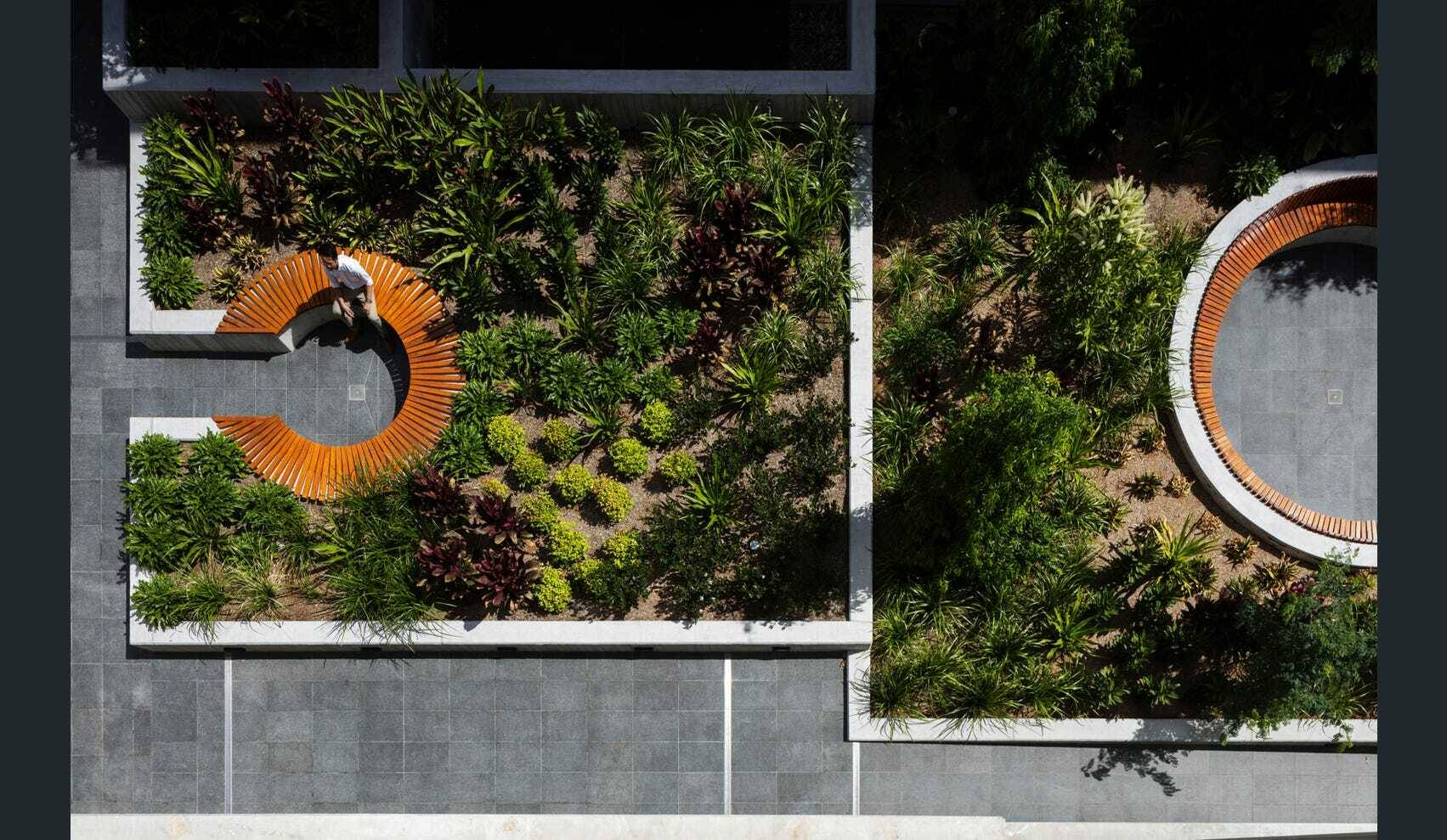 The development includes a communal garden area.
