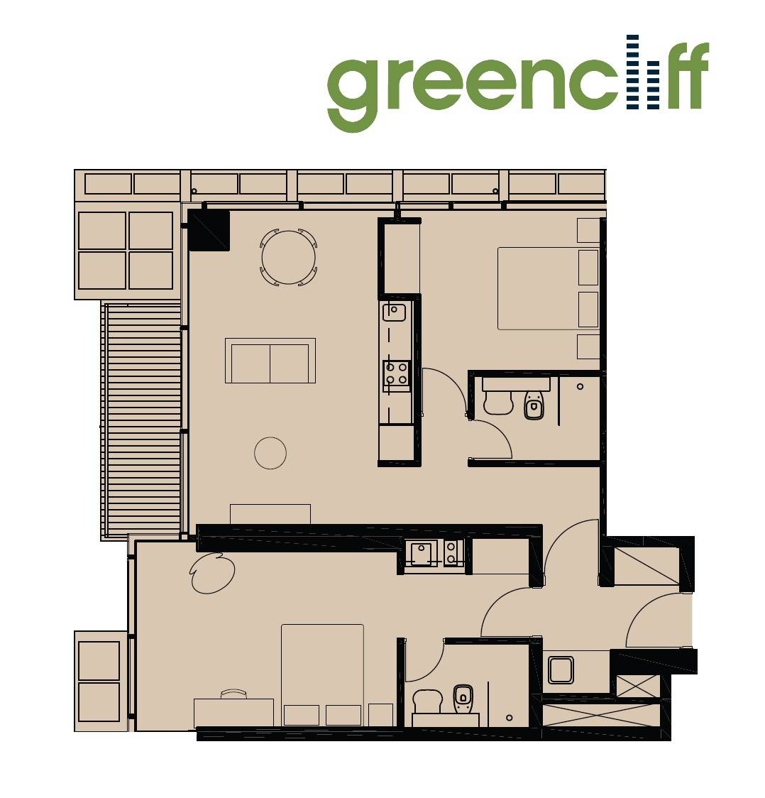 Comprising of a one bedroom and a studio with the flexibility to lease individually, live in one and lease the other or occupy as a large 2 bedroom apartment.