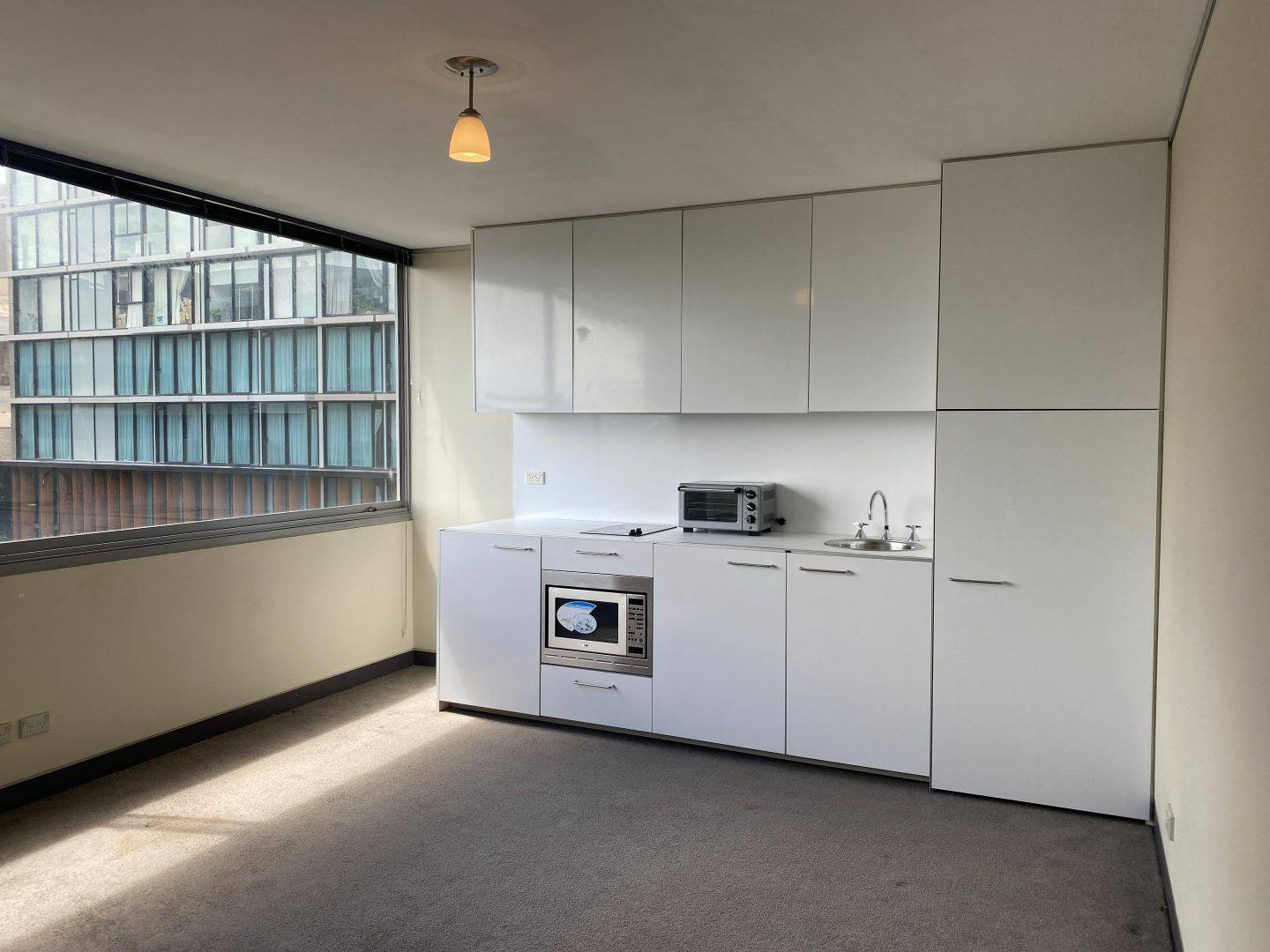 • Streamlined galley kitchenette with electric cooking, Caesarstone bench-tops