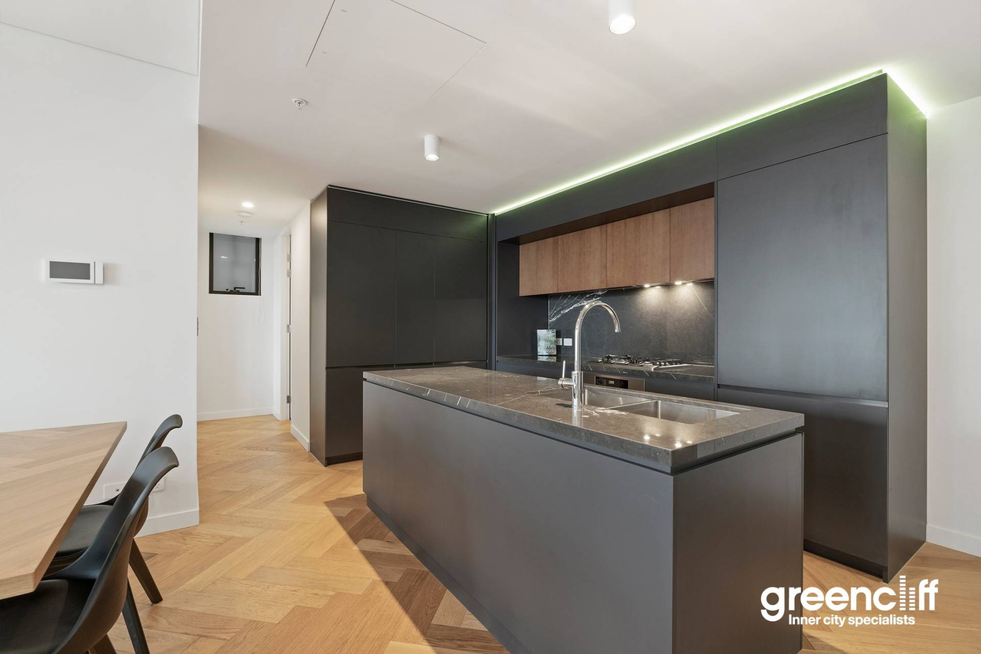 Herringbone engineered timber flooring to the living space leading out to a North facing entertainers balcony. This apartment ticks all the boxes and ready for you to move in and enjoy NYE 2022 fireworks from your own private balcony.