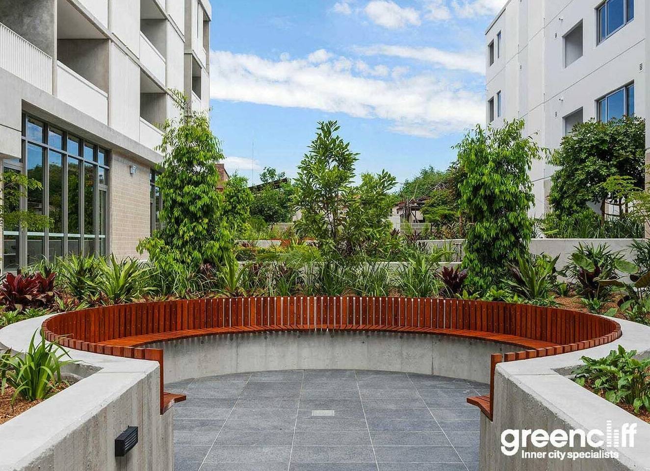 • The development includes a communal garden area.