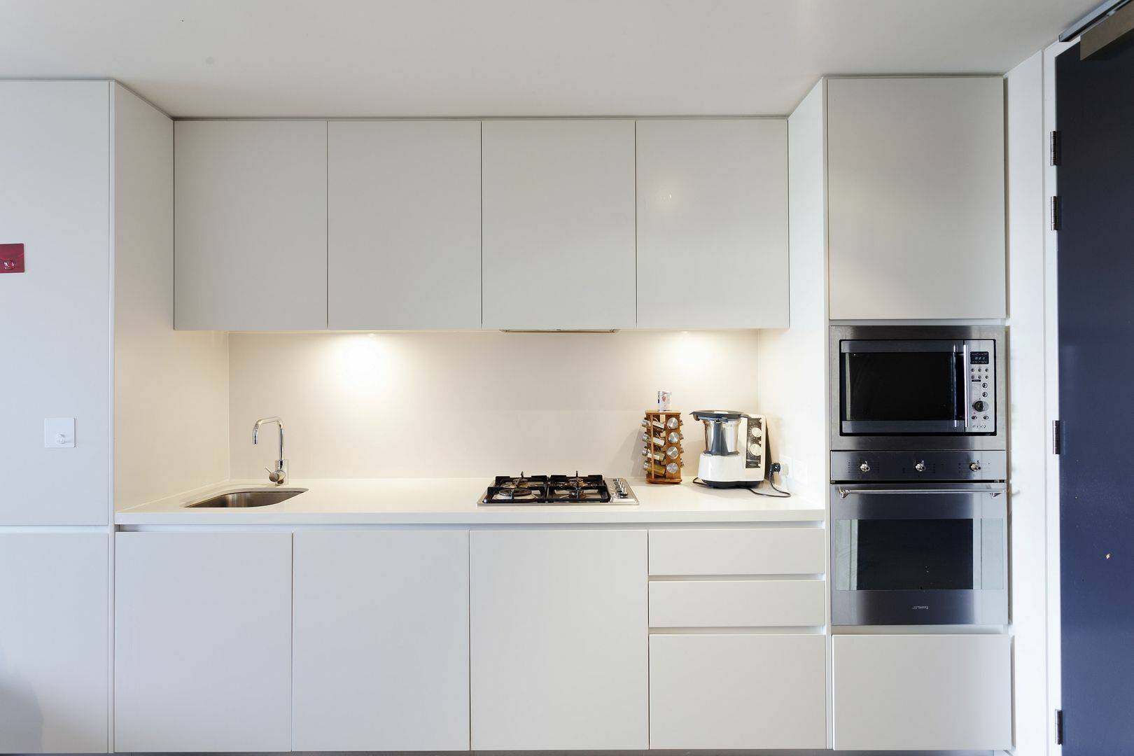 • Open plan gas kitchen with Smeg stainless steel appliances