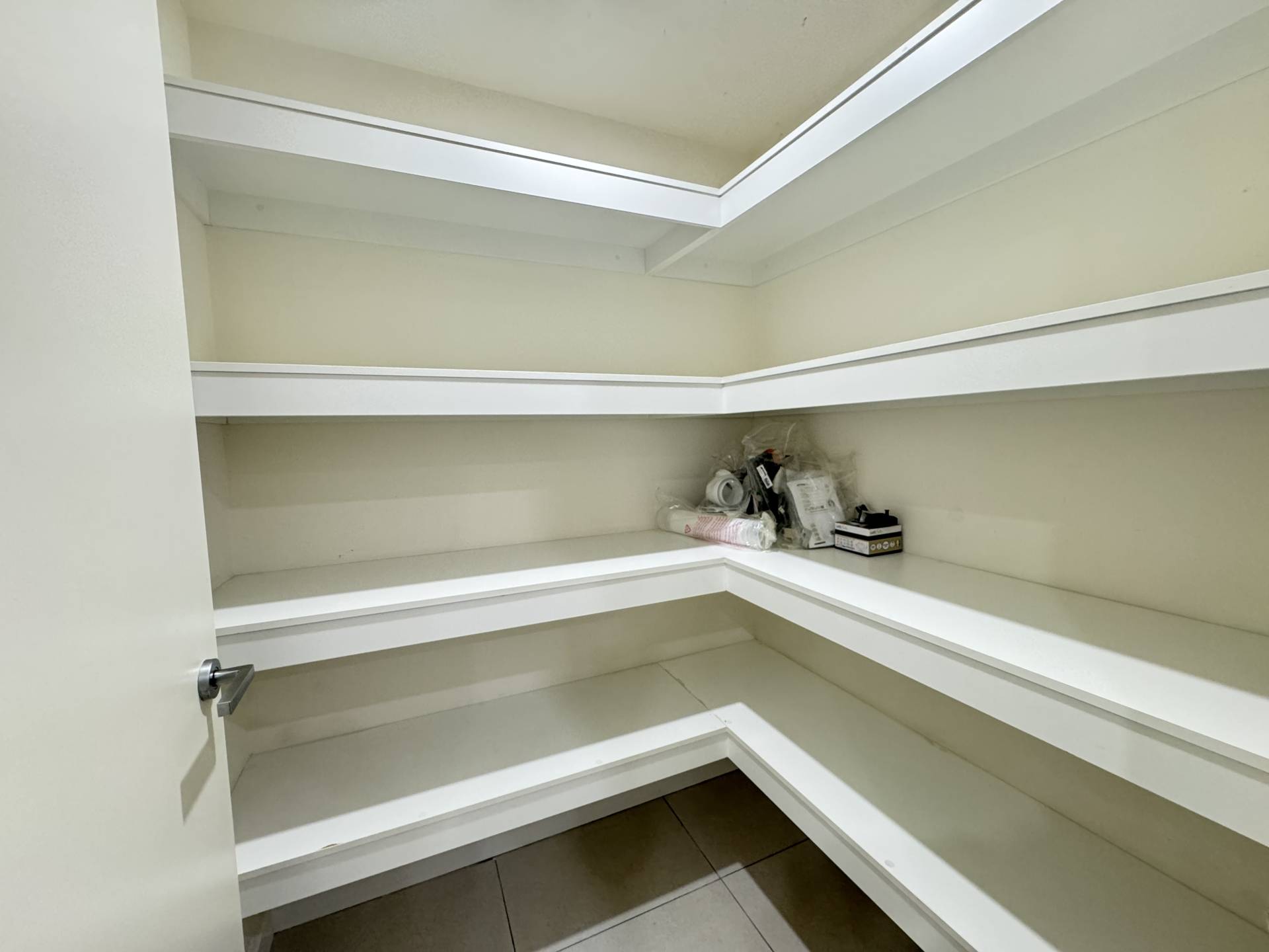 🍽️ Modern kitchen equipped with top-of-the-line appliances, including a big kitchen storage room.