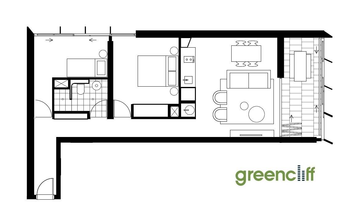 - Floor to ceiling glass doors that open up to a spacious loggia