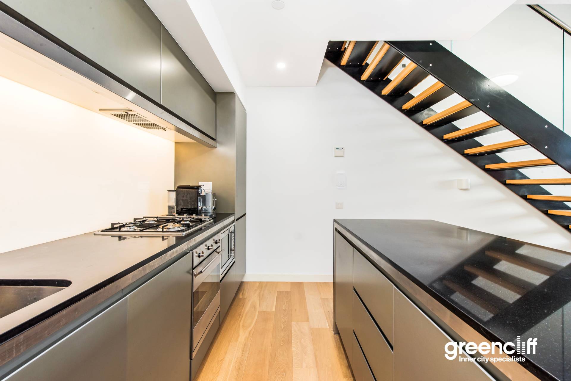 • Sleek, modern kitchen with gas cooking and premium European stainless steel appliances