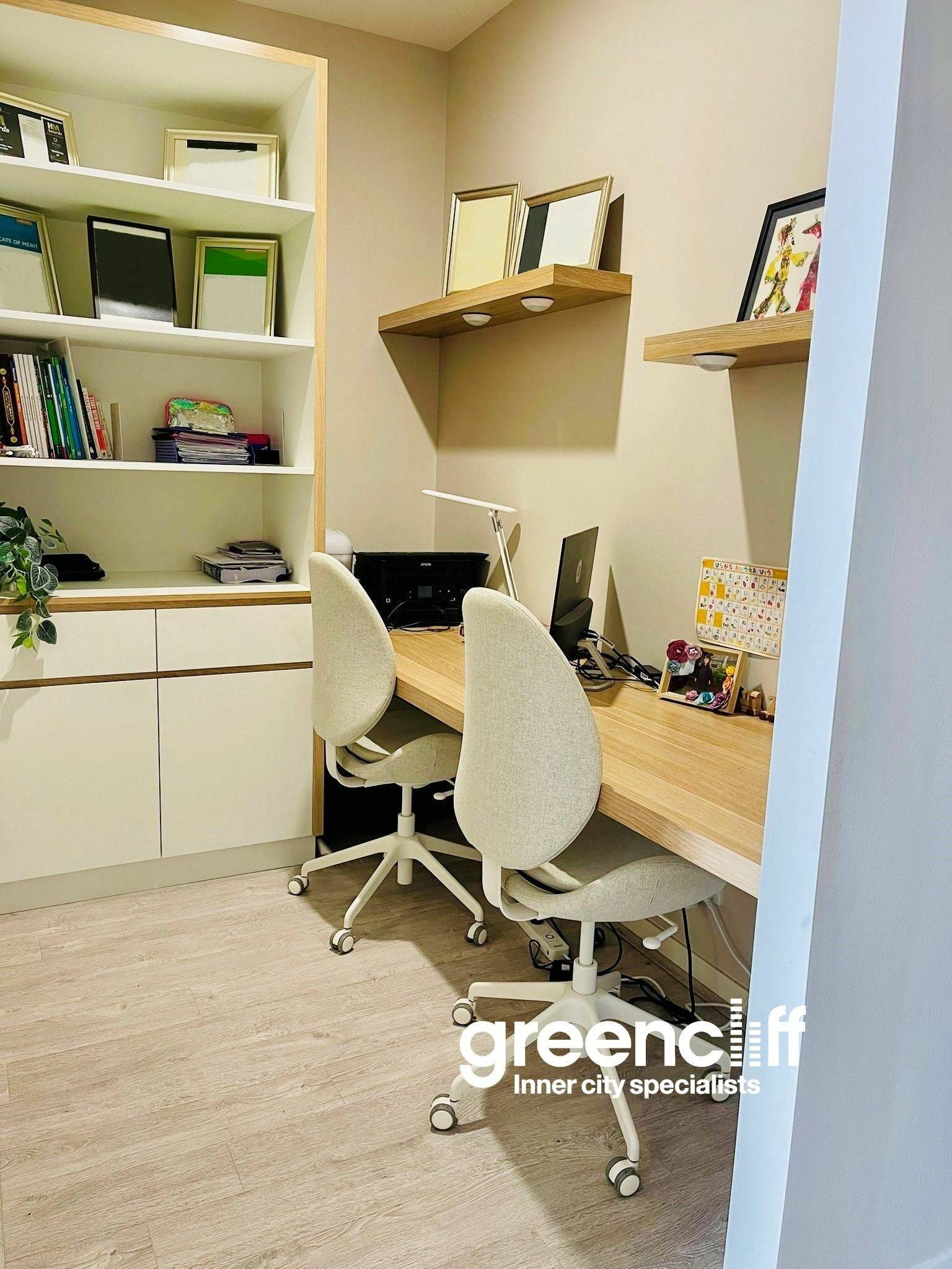 • Dedicated study nook with custom-built desk and storage