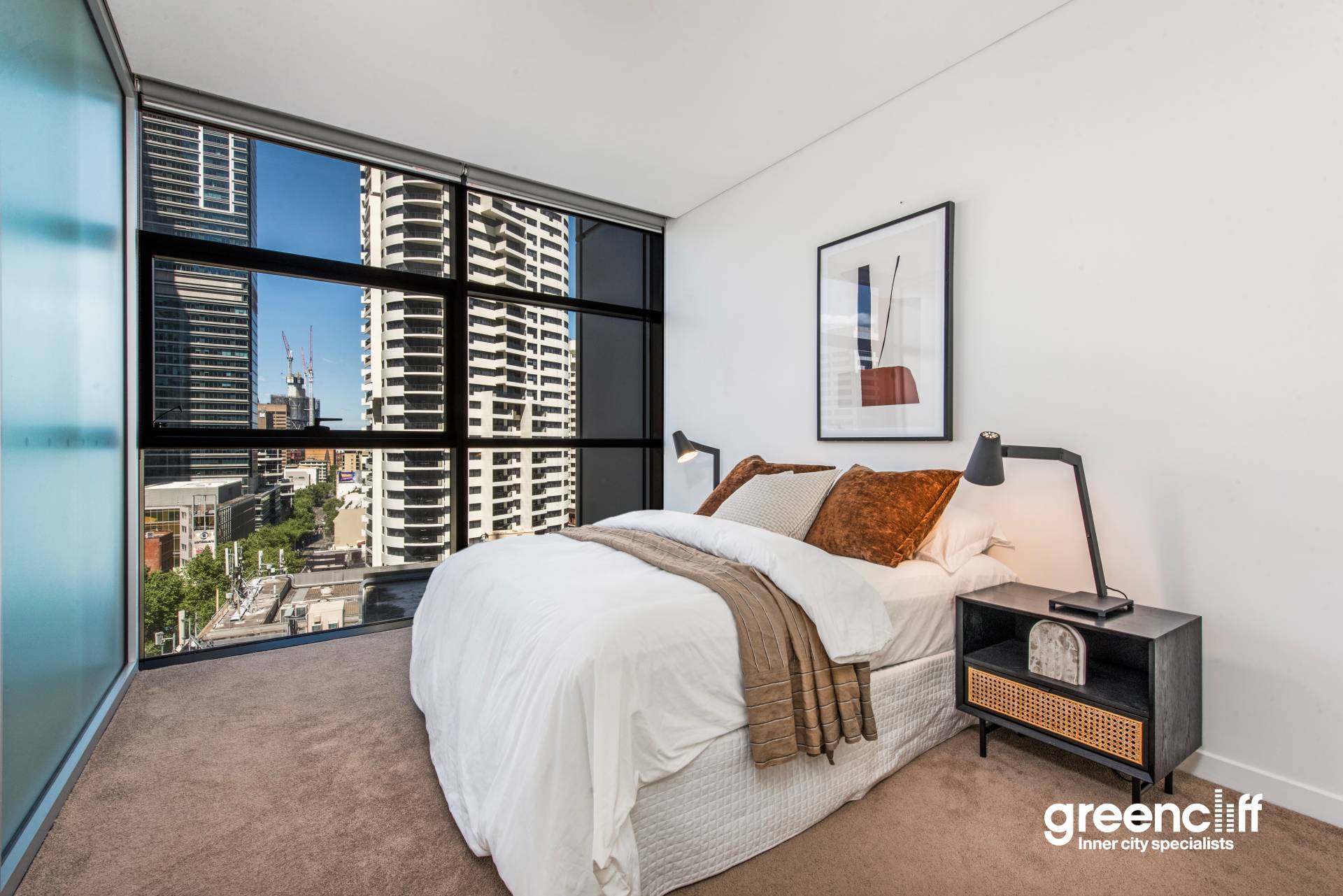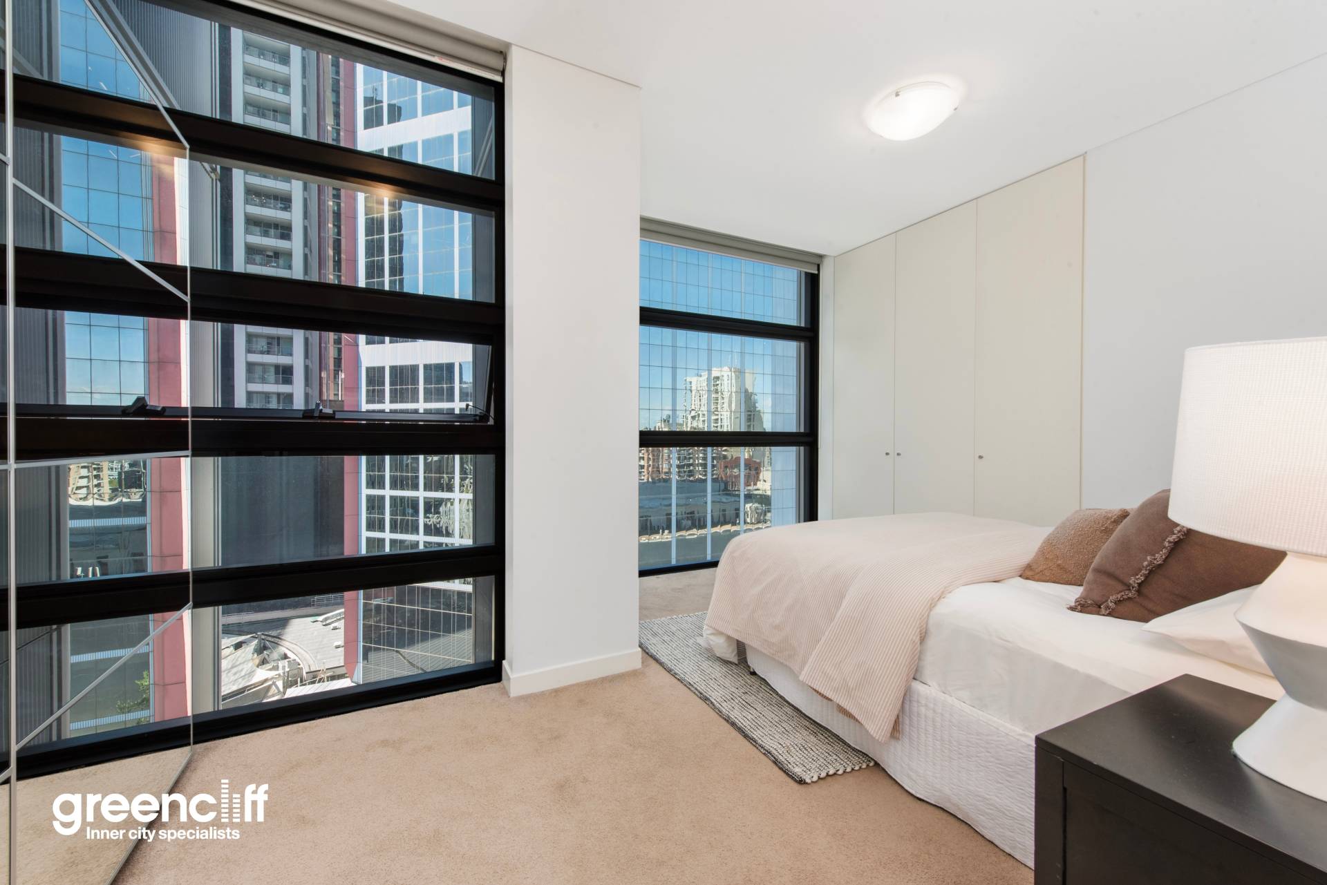 Positioned on level 20 of the prestigious Lumiere Residences, this spacious south-facing two-bedroom apartment showcases elegant modern design and an intelligent floor plan. The interiors feature wide timber flooring, full-height glass windows, and a seamless open layout connecting the living, dining, and winter garden zones. The enclosed loggia frames sweeping city views, creating a versatile space ideal for entertaining or quiet retreat.