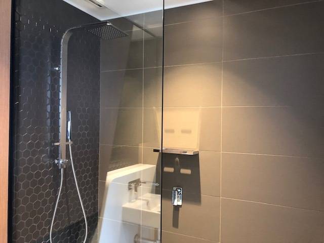 * Stylish bathroom with rain shower.