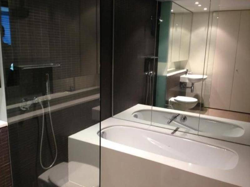 - Sleek bathroom with separate bath and shower